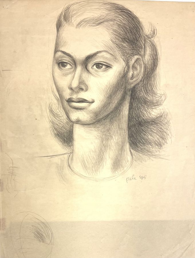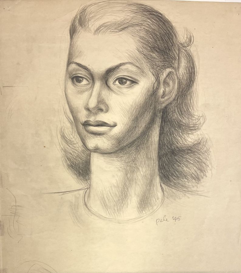 De Lappe, Pele (American, 1916-2007). PORTRAIT OF THE ACTRESS LAUREN BACALL. Pencil, 1945. Signed "Pele" and dated "45" in pencil. 18 x 12 inches (sheet). In very good condition, but with a fold near the bottom of the sheet. Although not stated to be Bacall, the resemblance is clear.